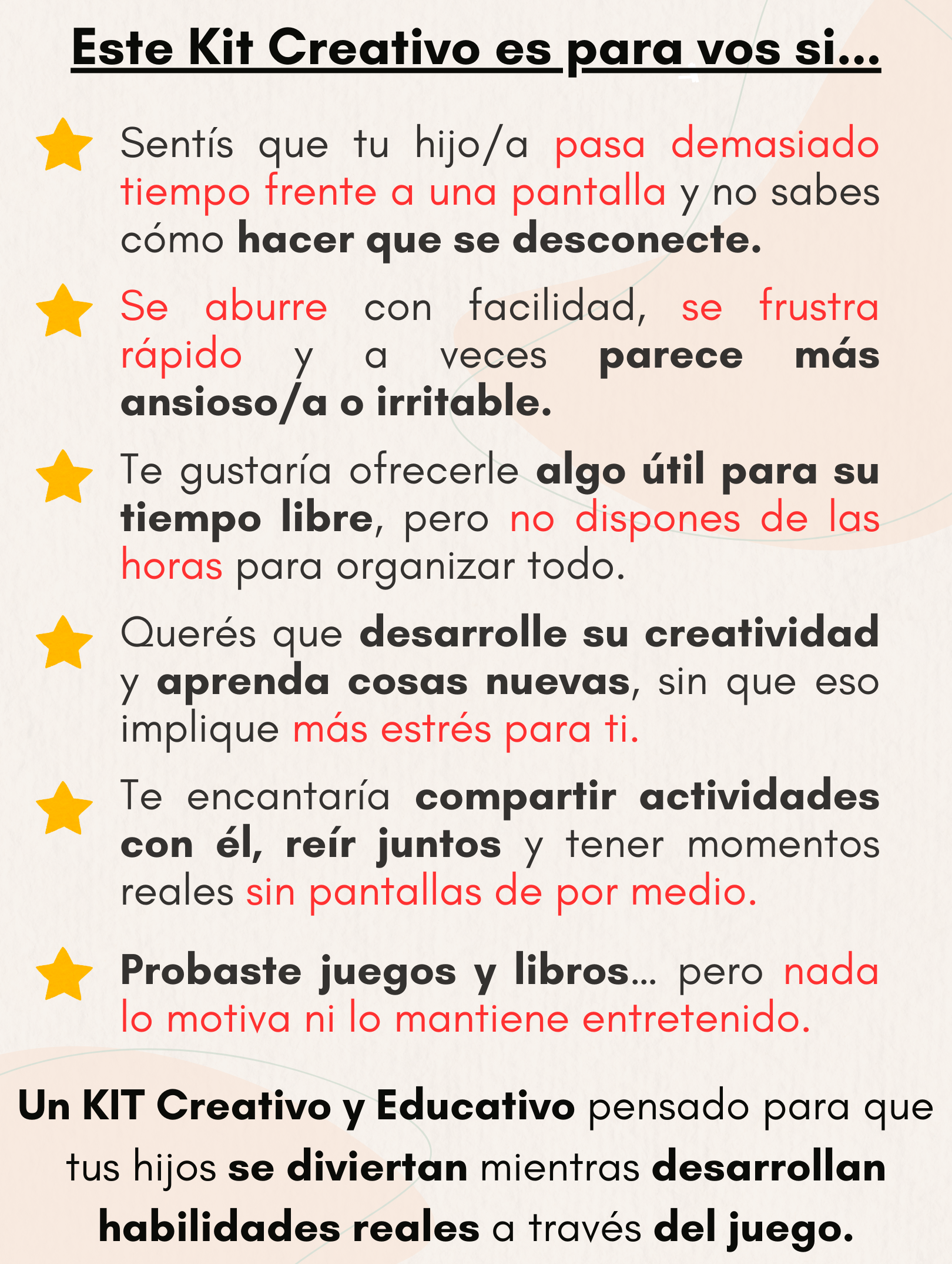 Un KIT Creativo y Educativo pensado para que tus hijos se diviertan mientras desarrollan habilidades reales a través del juego.