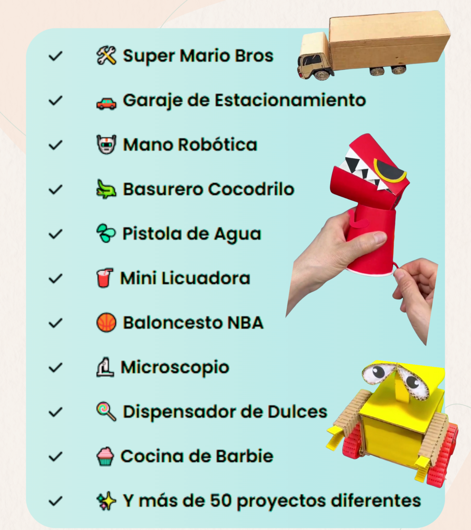 - 🔧 Proyectos: Mini Licuadora, Mano Robótica, Pistola de Agua, Mario Bros...