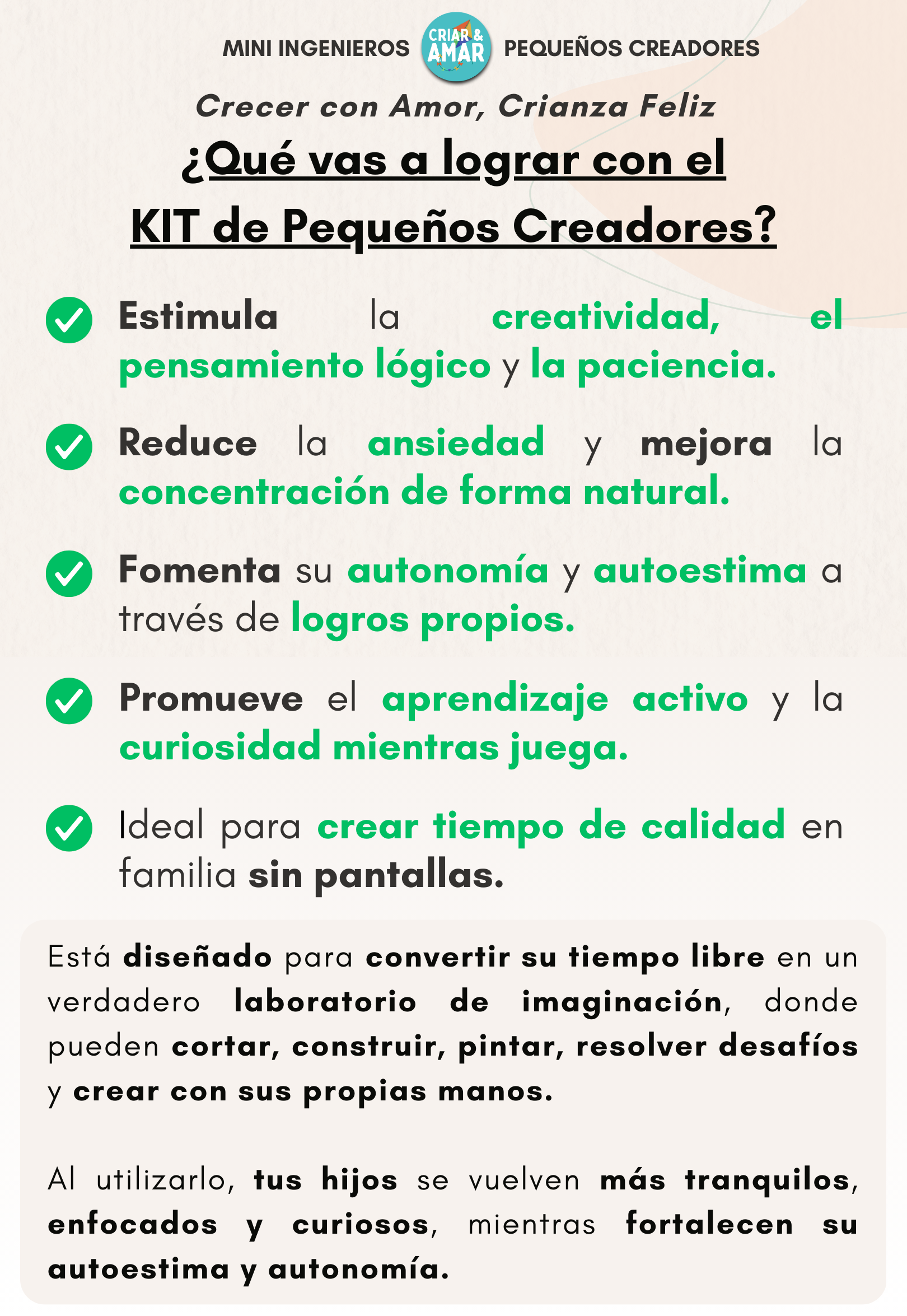 🤔 ¿Qué incluye exactamente este KIT de MINI INGENIEROS: Pequeños Creadores?